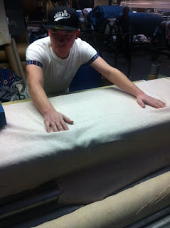I then sewed up the printed fabric so that it could be baked in the huge baker at the end of the flatbed machine. This is a truly terrifying moment